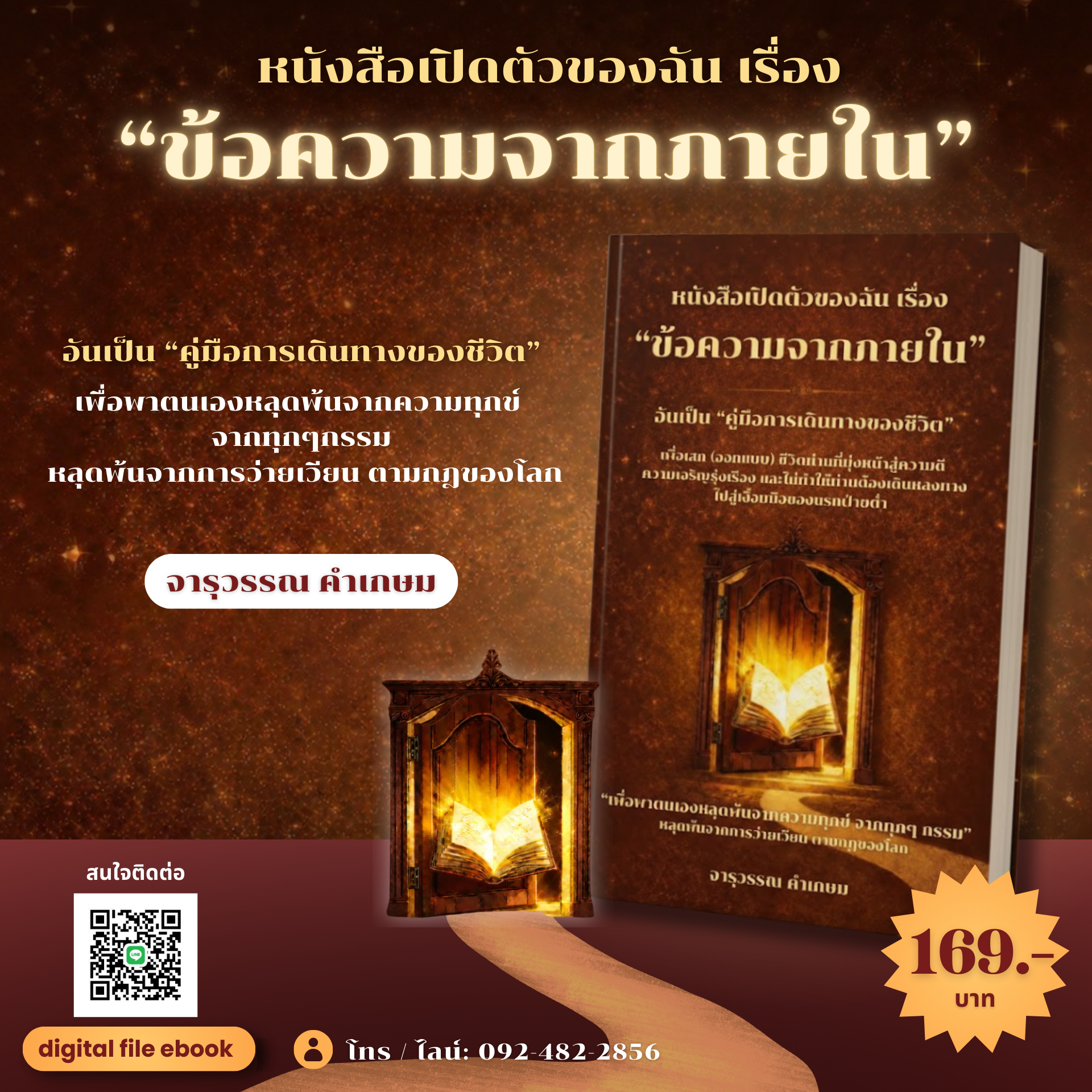 ข้อความต่างๆ เหล่านี้ ฉันได้ทำการเขียนขึ้นมาด้วยตัวเองนับตั้งแต่ปลายปี 2557 และฉันนำมันขึ้นเผยแพร่ไว้ทาง Facebook ของฉัน (FB: Jaruwan Kamkasem) ข้อความ บทความ เนื้อหาต่างๆ ที่ได้เขียนขึ้น มันมาจากปัญญาที่เกิดขึ้นมาจากการเดินทางของชีวิต จากประสบการณ์ จากมุมมองในแง่มุมต่างๆ จากความคิดอันลึกซึ้ง ซึ่งฉันได้มีความ เข้าใจ และกระจ่าง ต่อข้อเขียนต่างๆ ของฉันเป็นอย่างดี และข้อความต่างๆ เหล่านี้ เขียนขึ้นมาจาก ความจริง ล้วนๆ)