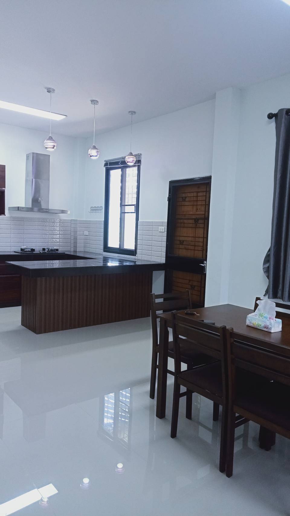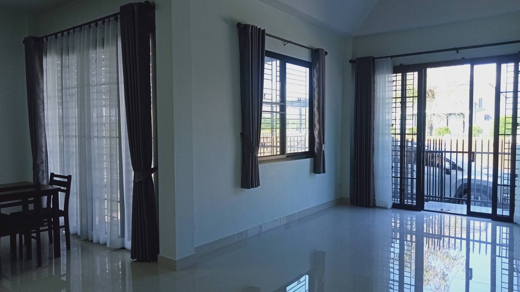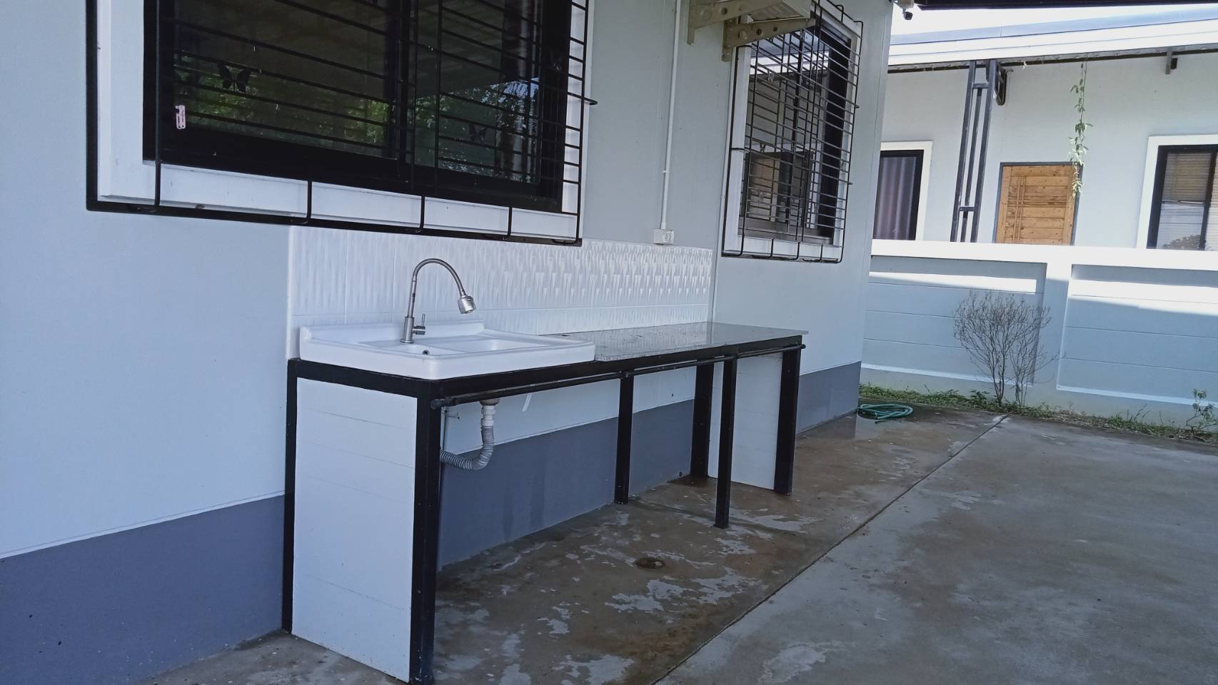 บ้านเดี่ยวชั้นเดียว 3 ห้องนอน, 2 ห้องน้ำ, 1 ห้องโถงกว้าง, 1 โซนพื้นที่ห้องครัว+เคาน์เตอร์ครัว+ซิงค์ล้างจาน, บ้านกว้างขวางอยู่สบาย, มีที่จอดรถยนต์ได้ 2-3 คัน (พื้นที่ 70 ตรว.)