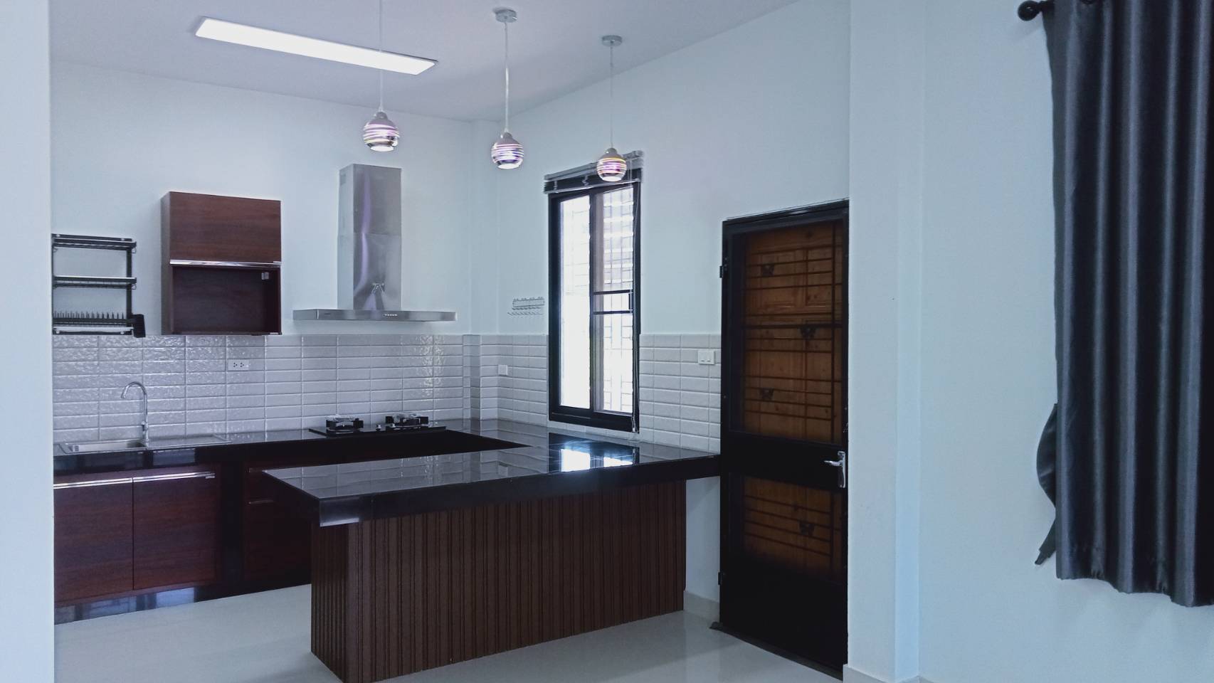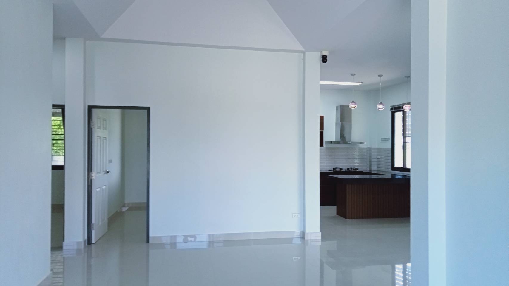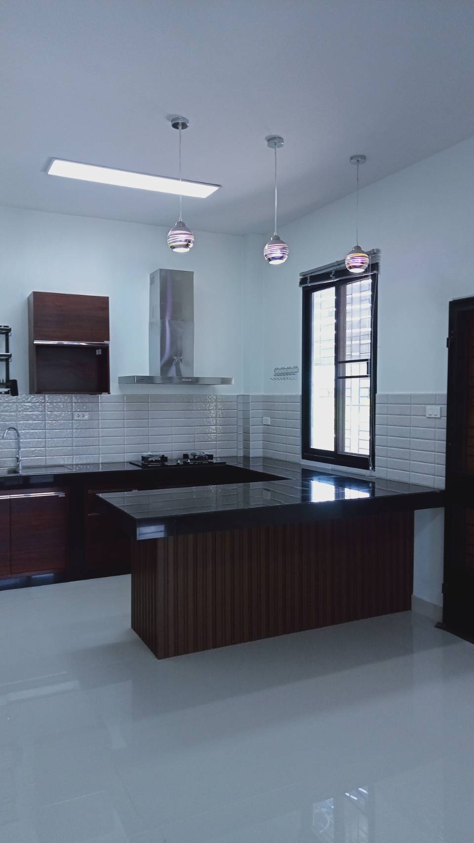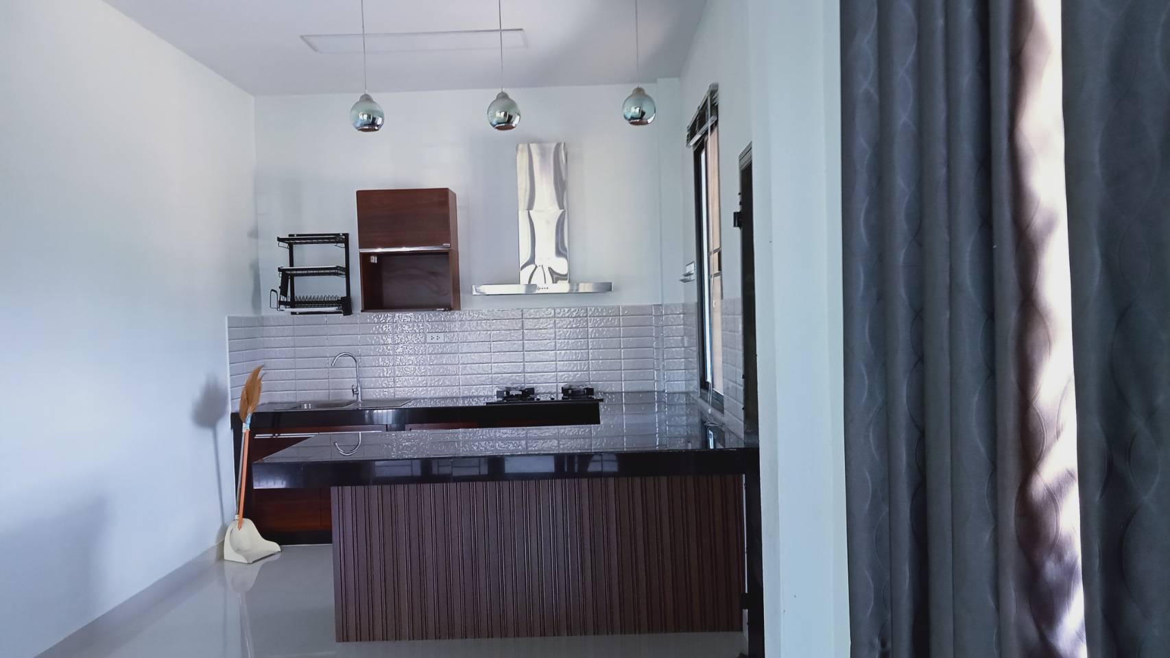 บ้านเดี่ยวชั้นเดียว 3 ห้องนอน, 2 ห้องน้ำ, 1 ห้องโถงกว้าง, 1 โซนพื้นที่ห้องครัว+เคาน์เตอร์ครัว+ซิงค์ล้างจาน, บ้านกว้างขวางอยู่สบาย, มีที่จอดรถยนต์ได้ 2-3 คัน (พื้นที่ 70 ตรว.)