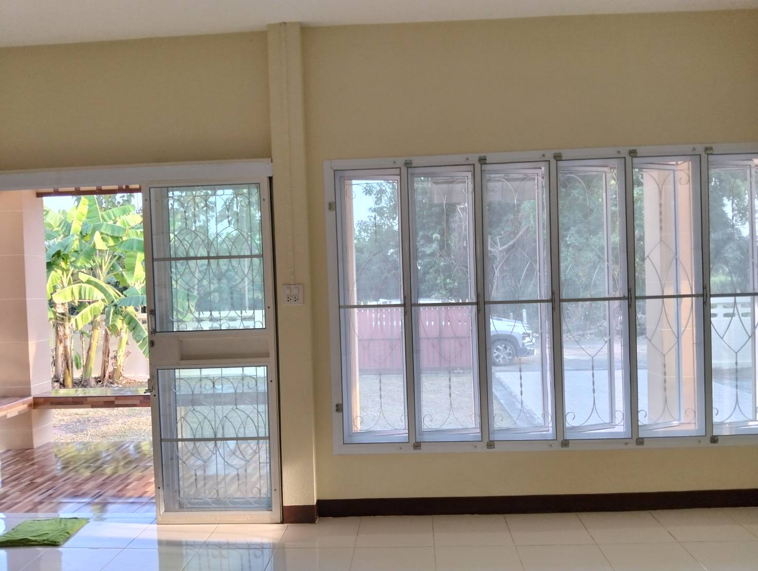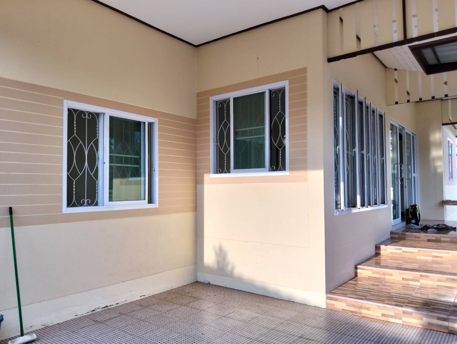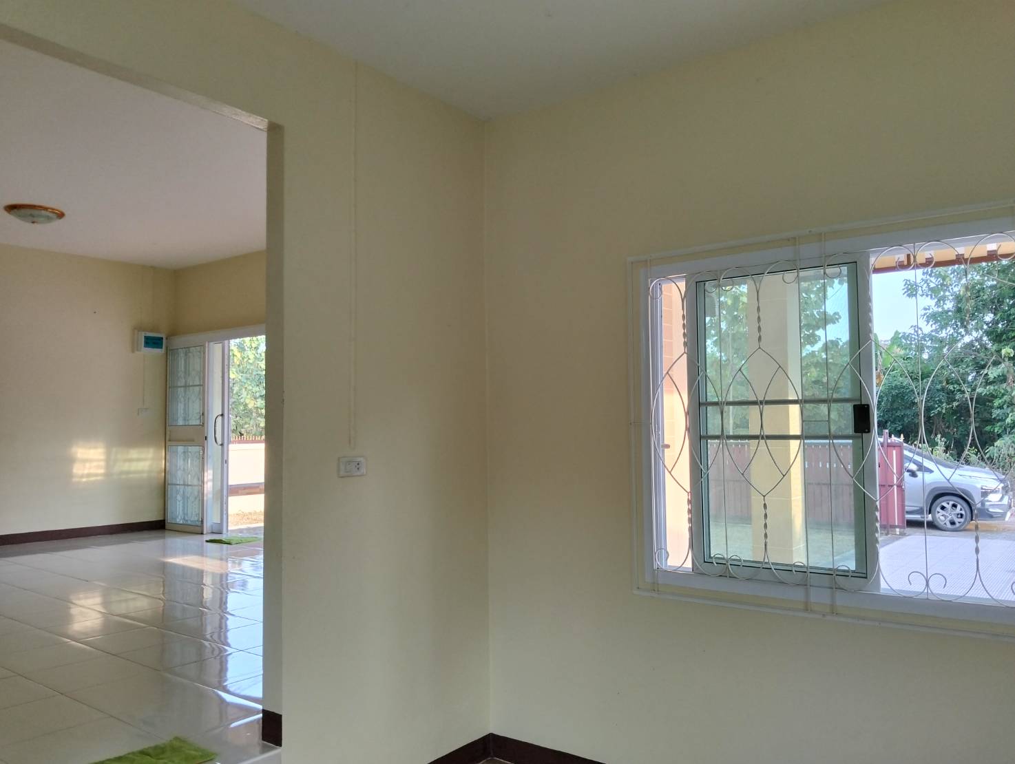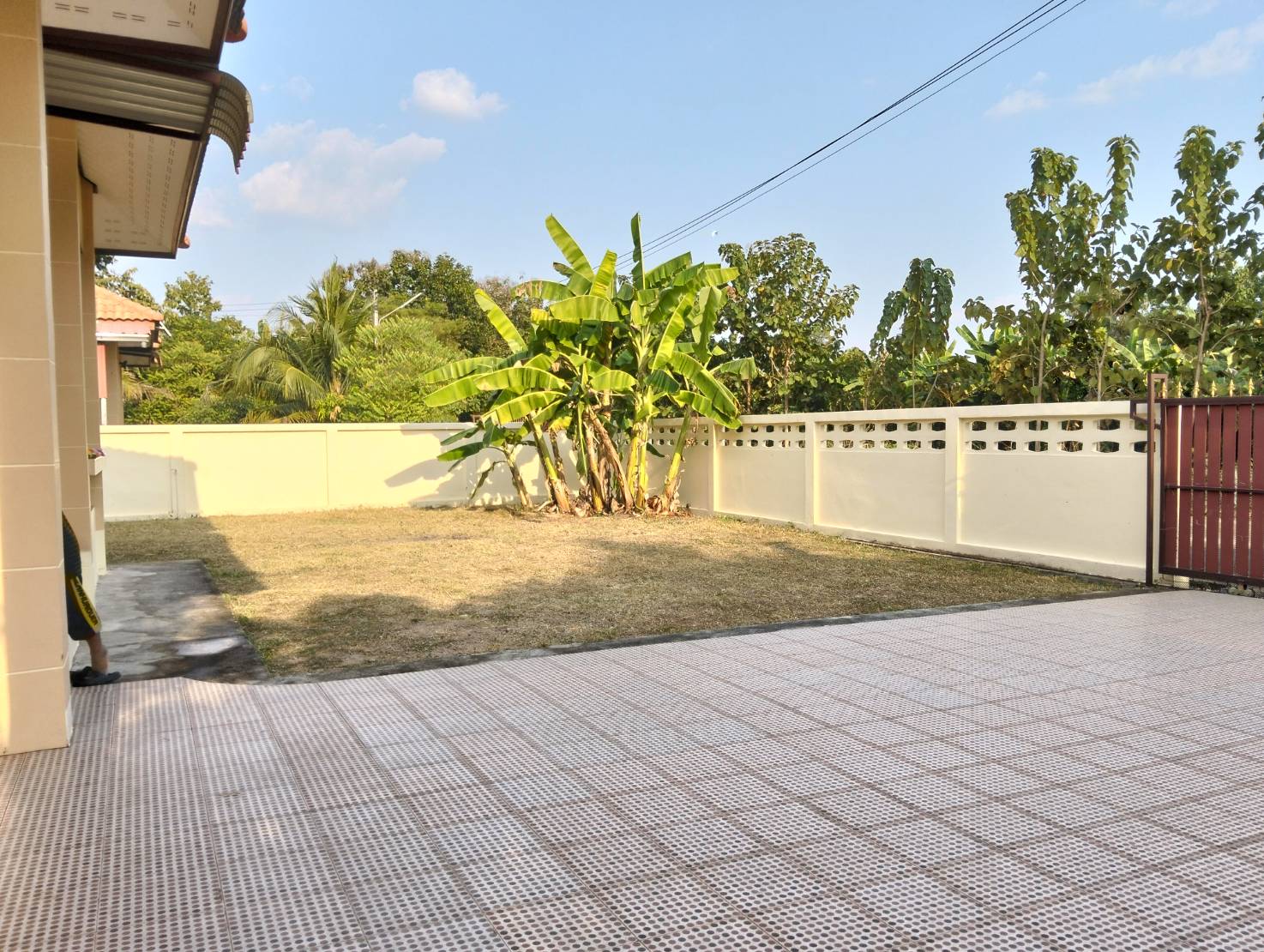 บ้านเดี่ยวชั้นเดียว 3 ห้องนอน, 2 ห้องน้ำ, 1 ห้องโถงกว้าง, 1 ห้องครัว+เคาน์เตอร์ครัว+ซิงค์ล้างจาน, บ้านกว้างขวางอยู่สบาย, มีที่จอดรถยนต์ได้ 2-3 คัน (พื้นที่ 100 ตรว.)